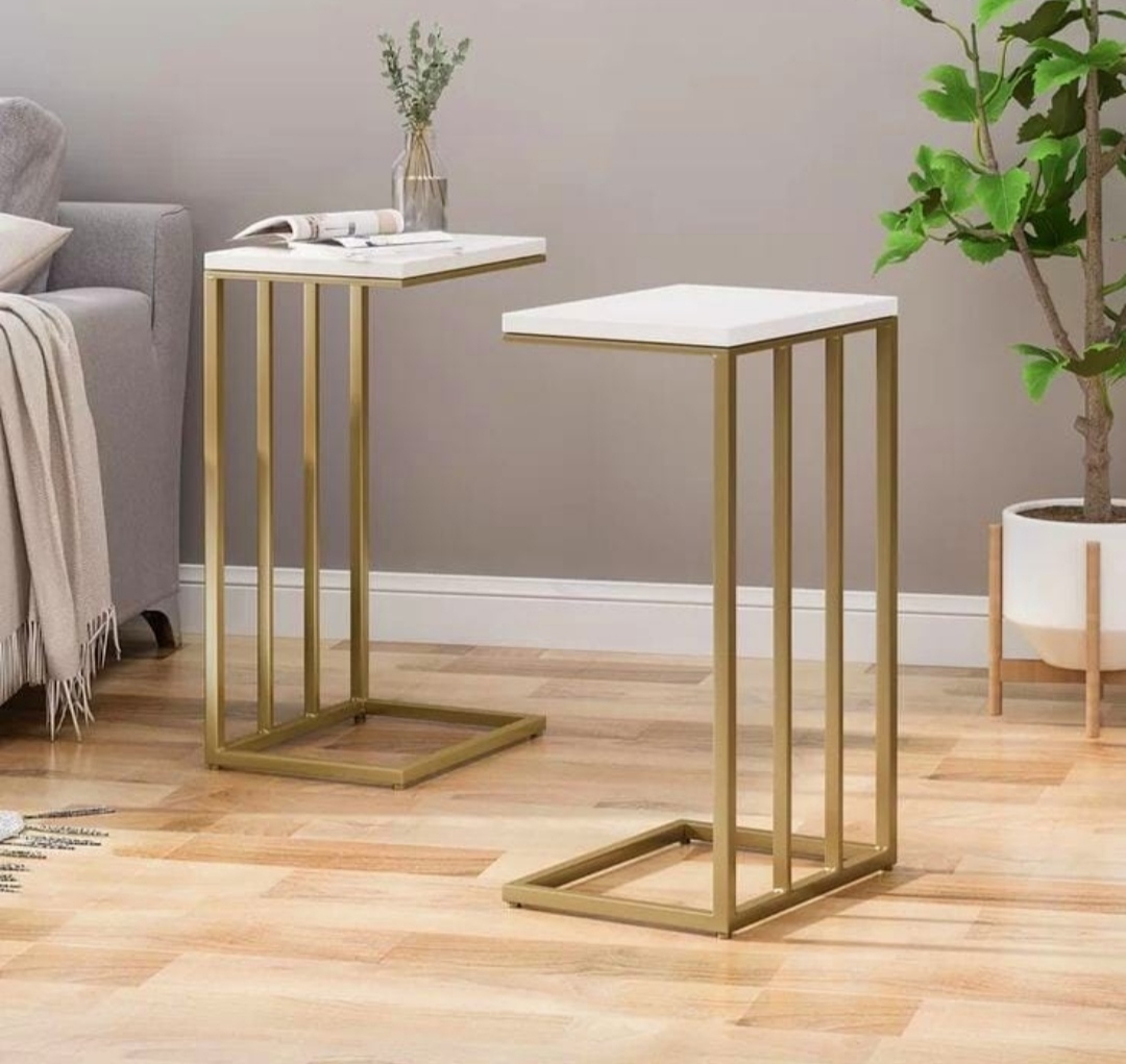 La Mesa lateral tiene una estructura de fierro electropintado, La cubierta es de mármol blanco carrara.